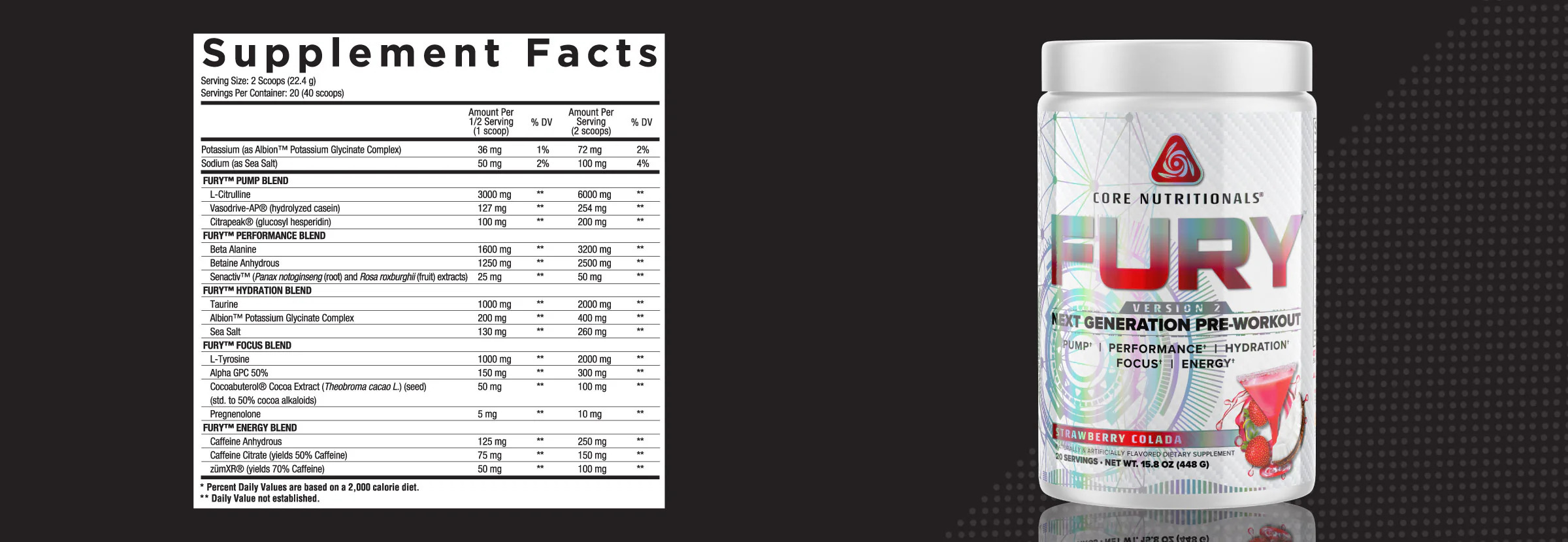 With every rep, every mile, every day spent at the gym, your body improves. You could say the latest iteration of our premiere pre-workout, Core FURY, has done the same – but you’d be wrong. This reformulation is more like a tsunami, where the only ingredients left standing in its wake were those with the strongest clinical foundations and indisputable efficacy. Those ingredients were then used as the base around which we built a disruptive, cutting-edge, and revolutionary new product. We’ve not only replaced the old with the new, but created innovative combinations never before seen in a pre-workout formula. In the process, we’ve created a worthy successor to a product known for redefining the category. With that, let us introduce you to FURY Version 2.