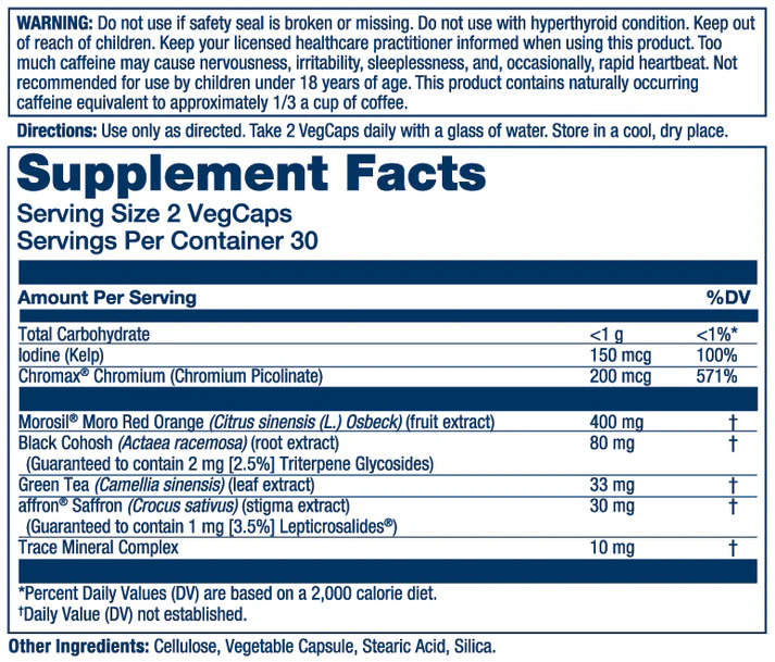and waist circumference,* along with Chromax® Chromium for blood sugar regulation and iodine to support thyroid health.*